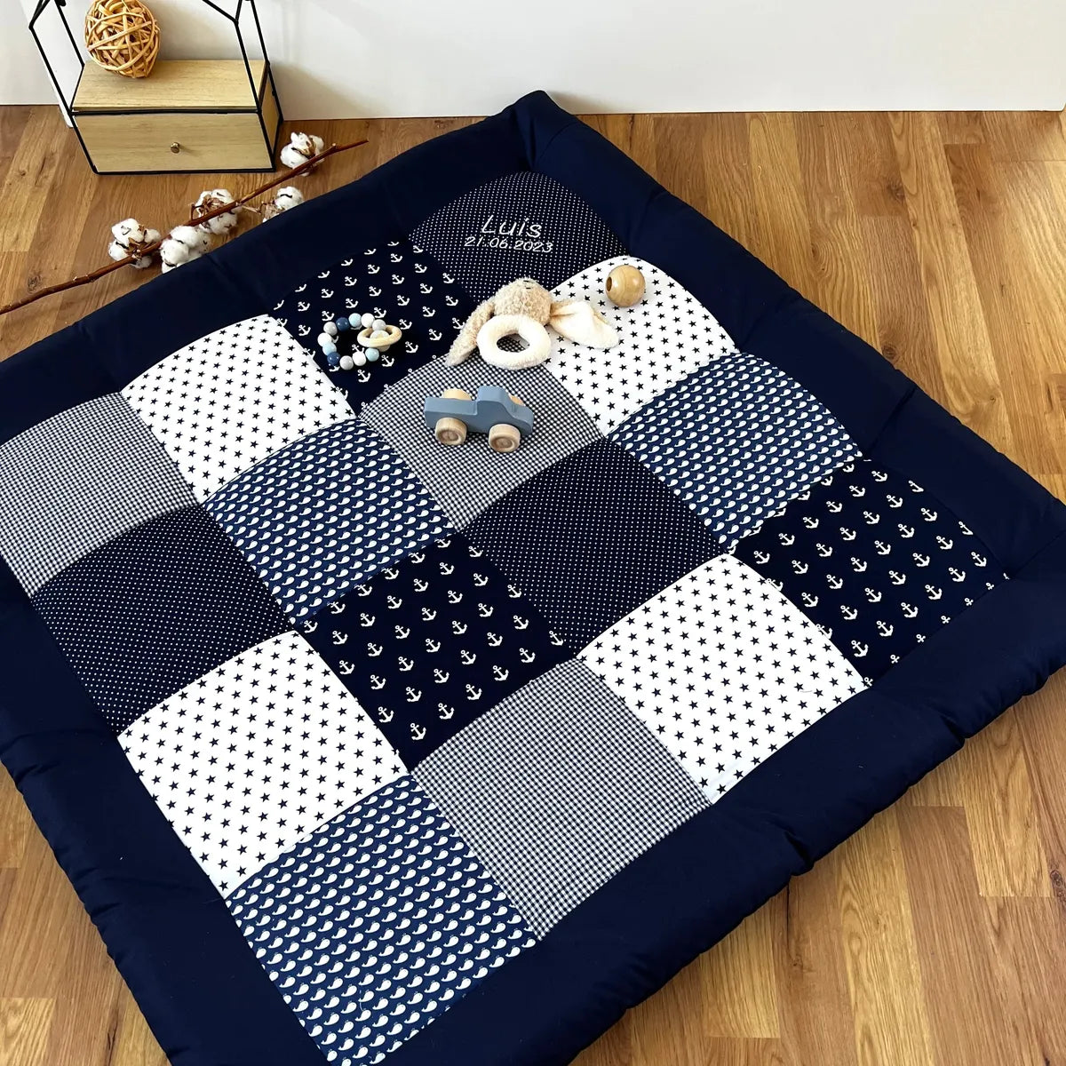 Nähpaket * Krabbeldecke* Patchwork * Anker Wale Blau