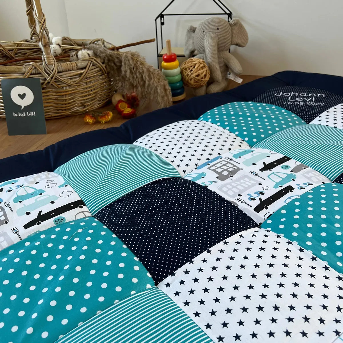 Nähpaket * Krabbeldecke* Patchwork * Autos Blau Türkis