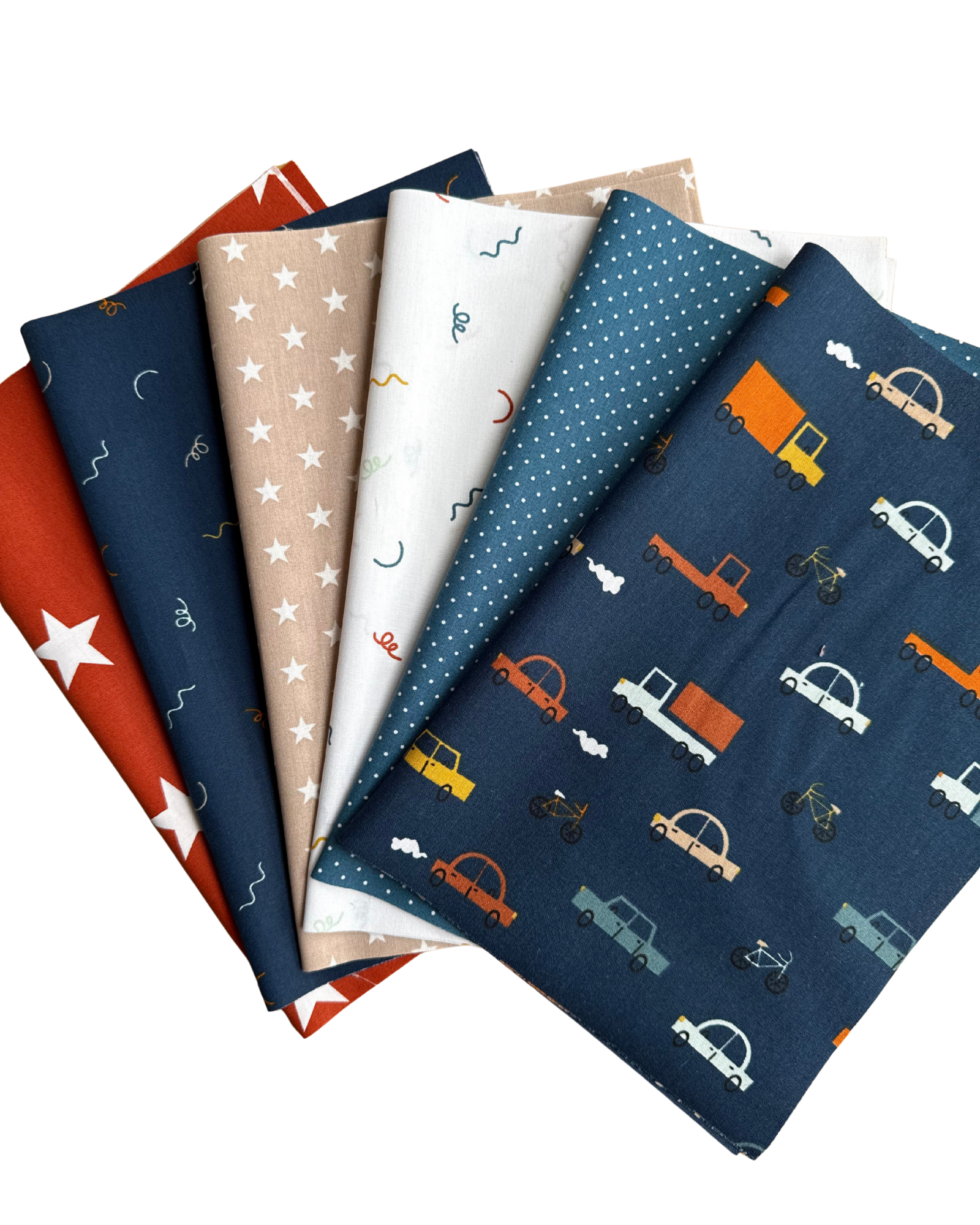 Patchworkstoffe 12 x (25x35cm) Kinderstoffe Autos Navy