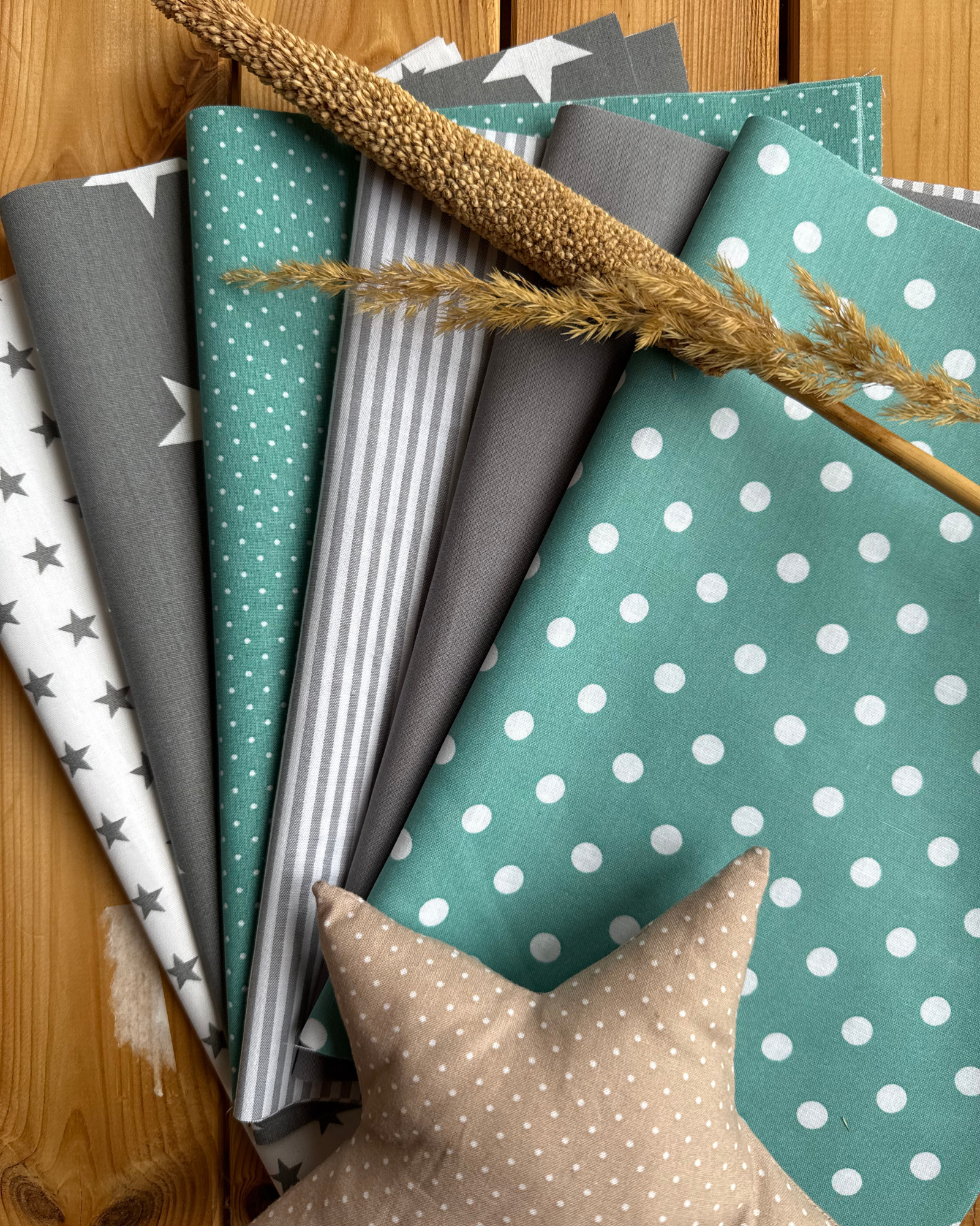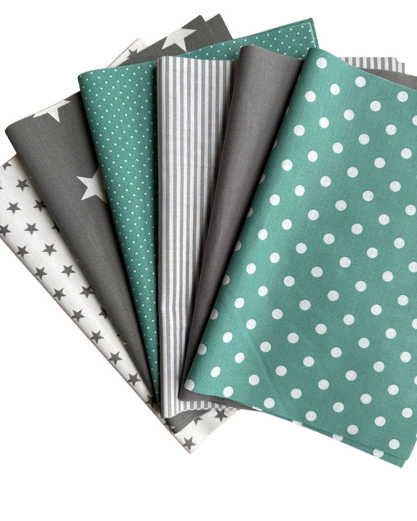 Patchworkstoffe 12x (25 x 35 cm) Pfefferminz Grau