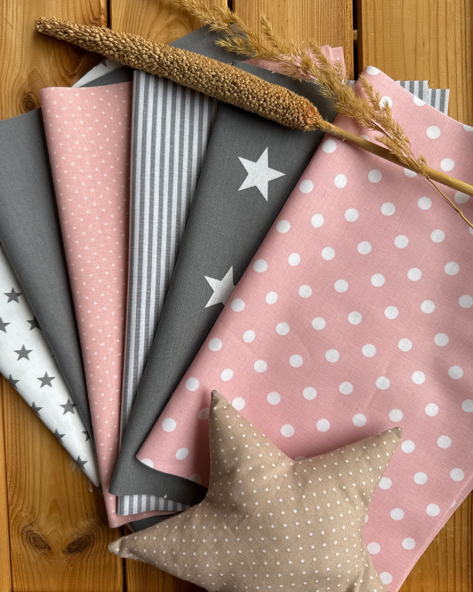 Patchworkstoffe 12x (25 x 35 cm) rosa grau